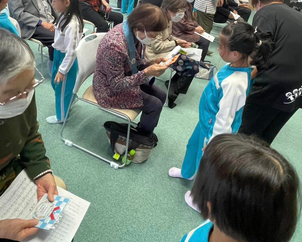 前住が41歳の時から始めたお寺の敬老会です。愛される老人になりましょうという願いにより「愛老会」として42回目になります。当初は対象者は20名程でした。今は226名いらっしゃいます。こども園園児の歓迎の催しや仏婦の手作り弁当。総代や仏壮の会場準備やお出迎え。今年はありませんでしたが、カラオケや地域の方々の出し物。そしてお寺からの粗品を差し上げます。コロナ禍からエリエールのマスクです。