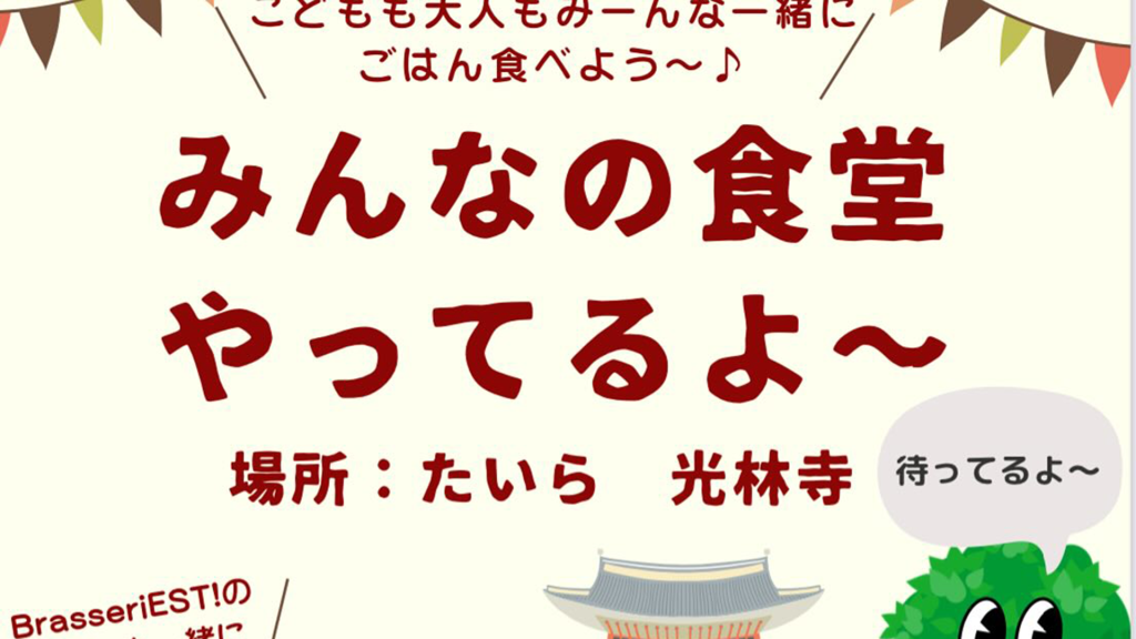 みなさま いつも光林寺の活動にご協力いただき誠にありがとうございます。 ご好評をいただいております、「みんなの昼食堂」「みんなの華葩食堂」は大雨予報のため中止致します。誠に残念ですが、皆様どうぞお大切にお過ごしください。