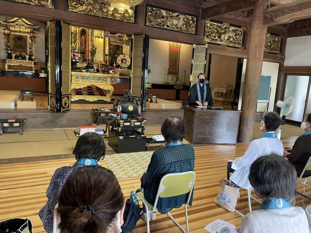 令和5年6月22日(木)に、光林寺仏教婦人会役員研修旅行に行ってまいりました。今回の研修旅行は日帰りコースとし、九重町の尊光寺様を参拝し、住職よりご法話をいただきました。その後、玖珠町豊後森駅前のブラッスリーエスト! で